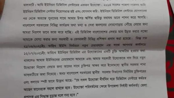 ঝালকাঠি প্রতিনিধিঃ ঝালকাঠির নলছিটিতে শপথ গ্রহণের দিনই ইউনিয়ন পরিষদ ডিজিটাল সেন্টারের দুই উদ্যোক্তাকে চাকুরিচ্যুত করার অভিযোগ পাওয়া গেছে ইউনিয়ন পরিষদ চেয়ারম্যানের বিরুদ্ধে। অভিযোগ সূত্রে জানা গেছে, উপজেলার সুবিদপুর ইউনিয়নের নব ......বিস্তারিত