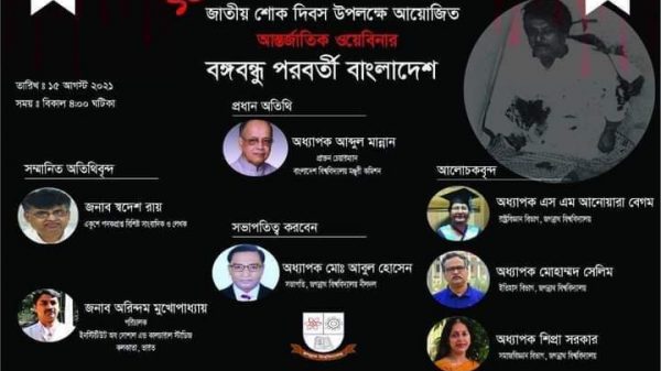 জবি প্রতিনিধি জগন্নাথ বিশ্ববিদ্যালয়ে (জবি) ১৫ আগষ্ট জাতীয় শোক দিবস উপলক্ষে আন্তর্জাতিক ওয়েবিনার আয়োজন করেছে বিশ্ববিদ্যালয়ের আওয়ামীপন্থী শিক্ষকদের সংগঠন জগন্নাথ বিশ্ববিদ্যালয় নীলদল। অনুষ্ঠানে অতিথি হিসেবে থাকবেন নিউজবাংলার সম্পাদক স্বদেশ রায়। ......বিস্তারিত