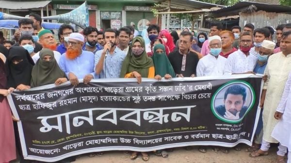 আবুল খায়ের স্বপন।। ঢাকা বিশ্ববিদ্যালয়ের মেধাবী ছাত্র হাফিজুর রহমানের হত্যাকারীদের বিচারের দাবিতে ব্রাহ্মণবাড়িয়ার কসবায় মানববন্ধন ও বিক্ষোভ মিছিল অনুষ্ঠিত হয়েছে। বৃহস্পতিবার বিকেলে খাড়েরা মোহাম্মদী উচ্চ বিদ্যালয়ের সাবেক-বর্তমান শিক্ষার্থী- শিক্ষক ও ......বিস্তারিত